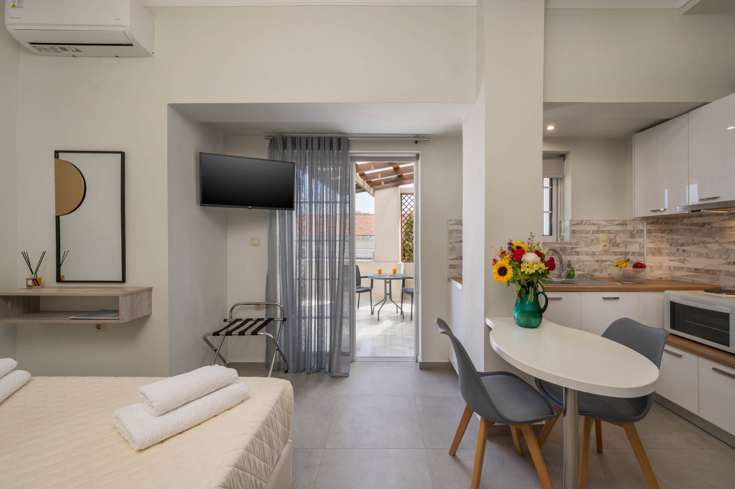 Just steps away from the historic old town and beautiful beaches, you can explore the vibrant local culture, indulge in delicious Cretan cuisine, and soak up the sun. After a day of adventure, unwind in our cozy accommodations, designed with your comfort in mind.